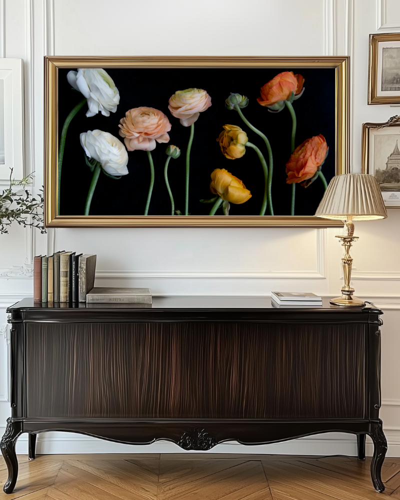 Our ranunculus mix Del Sol, set in moody light.