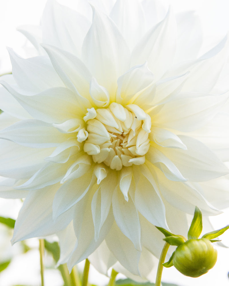 Graceful oval petals with dainty end-points fill this bloom with energy. The creamy taupe and yellow centers fade into a dazzling white that compliments the overall lightness of this special dahlia by giving it intriguing depth. If understated beauty is your thing, AC Casper delivers every time.