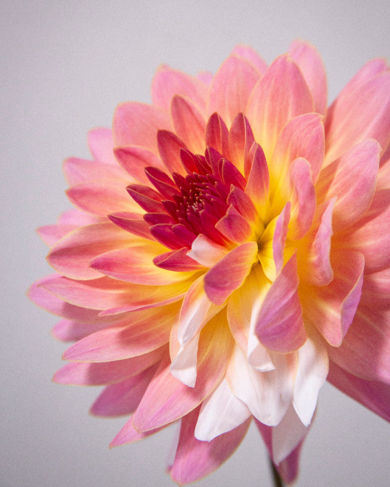 A varying mix of watermelon pink, bright yellow, and white, no two blooms are the same